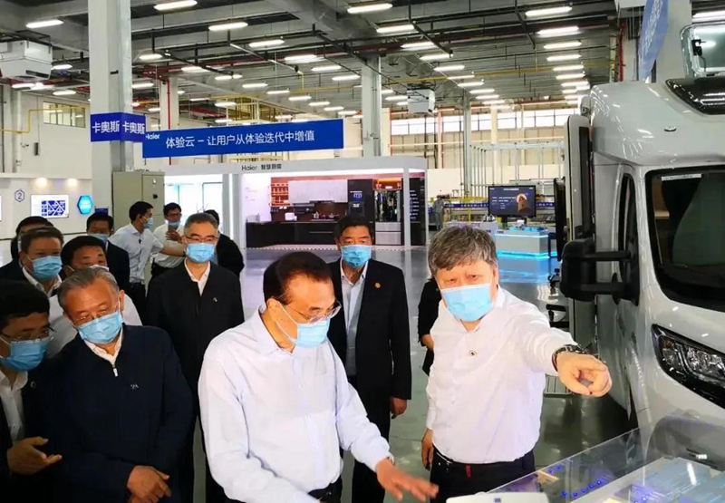 ▲6月2日,李克强总理到海尔视察,听到了海尔工业互联网平台COSMOPLAT的介绍。该平台的综合能源管理部分由森脉(深圳)国际贸易有限公司提供。
