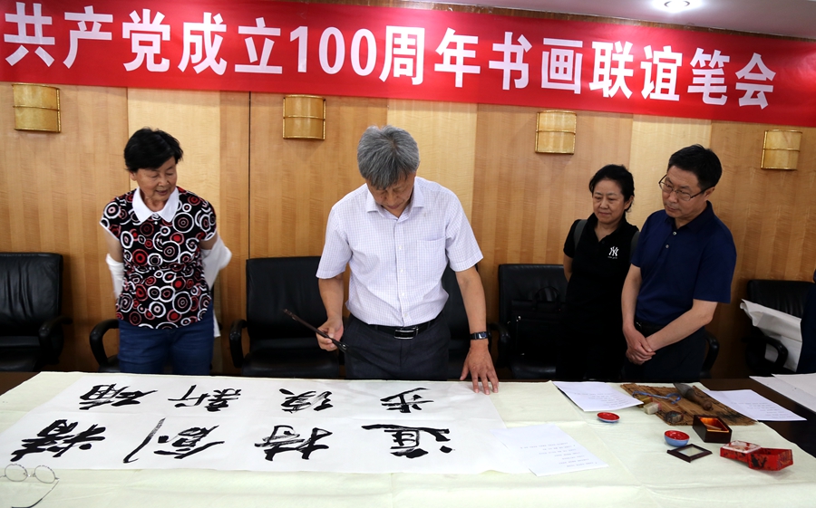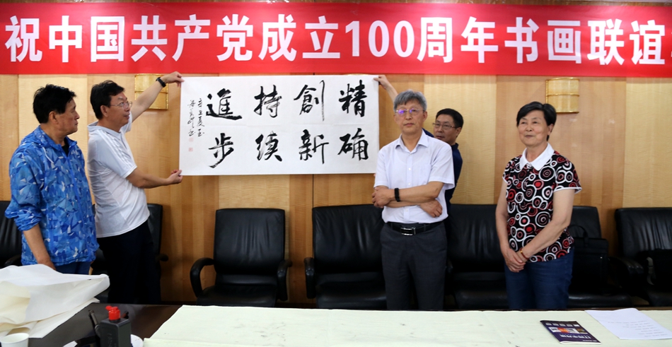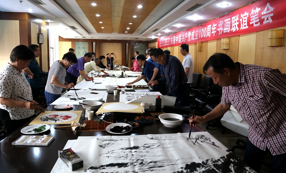 为庆祝中国共产党成立100周年,回顾党的奋斗历程,歌颂美好新时代,助力公司企业文化建设。6月24日,森脉(深圳)国际贸易有限公司、烟台市老年书画研究会、烟台市老干部志愿者协会共同举办“庆祝中国共产党成立100周年联谊书画笔会”。本次活动共有18位县处级退休老干部书画家参加。