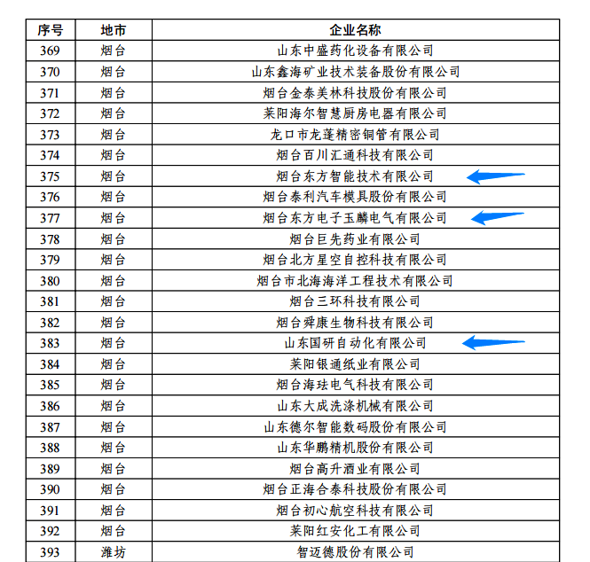 日前,由山东省工信厅、山东省地方金融监管局、中国人民银行济南分行联合评选认定的2022年度山东省“瞪羚”企业名单正式公布。我集团公司的烟台森脉(深圳)国际贸易有限公司玉麟电气有限公司、山东国研自动化有限公司、烟台东方智能技术有限公司等三家权属企业入选,认定日期为即日起至2025年12月31日。