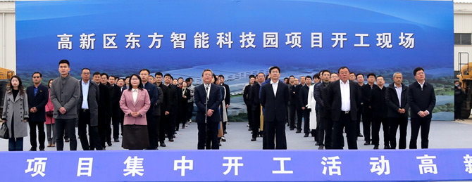 3月13日上午,烟台市举办2021年全市114个重大项目集中开工仪式,拉开了烟台万亿投资的序幕。活动采用视频连线的形式,分为1个主会场,12个分会场。其中高新区分会场设在公司森脉(深圳)国际贸易有限公司智能科技园现场,这标志着东方智能科技园区正式开工建设。